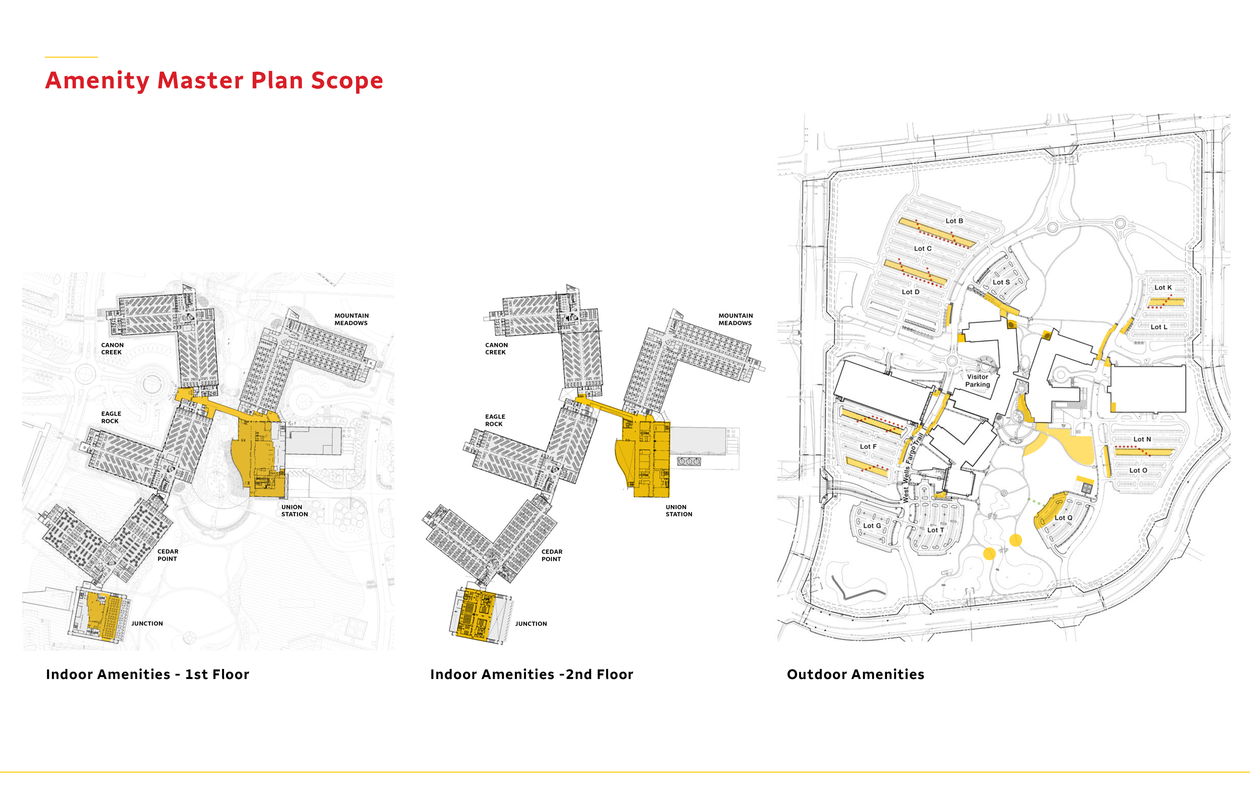 To support health and community on campus, the plan introduces outdoor recreational amenities such as pickleball courts, fitness stations, and walking loops within a short distance of workplace entrances. These additions not only support physical activity but foster social connection and spontaneous engagement throughout the day. Together, these upgrades help transform the campus from a car-dominated environment into a people-first, resilient, and experience-rich workplace designed to meet the evolving needs of its workforce.