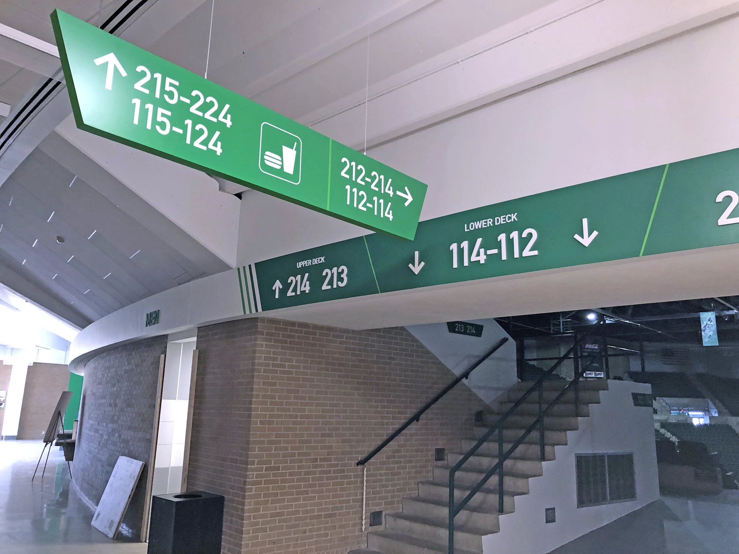 Arcturis was engaged by the University of North Texas (UNT) to provide graphic design and interior design services for the renovation of the main concourse inside the UNT Coliseum that hosts many of the university’s athletic events and acdemic programs. The Arcturis team utilized refreshed wayfinding graphics throughout the concourse, new environmental graphics surrounding the concession stands, and updated lighting to communicate the university’s athletic brand identity and provide a face-lift for the historic space. The entire concept creates a new opportunity to tell the story of UNT’s athletic heritage, recognize contributors to the program, and enhance the entire visitor experience.
